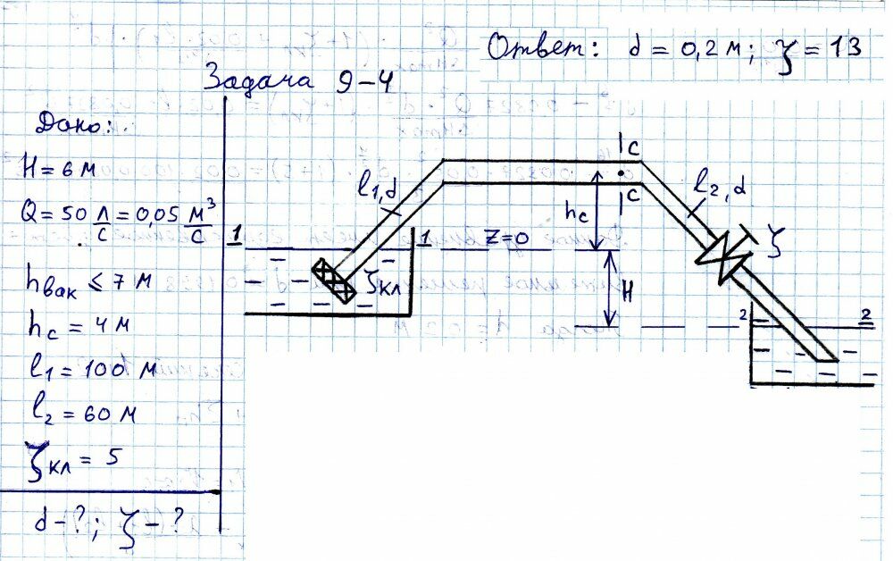Для студентов по предмету Механика жидкости и газа (МЖГ или Гидравлика)Задача 9-4Задача 9-4