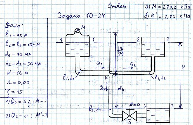 Для студентов по предмету Механика жидкости и газа (МЖГ или Гидравлика)Задача 10-24Задача 10-24