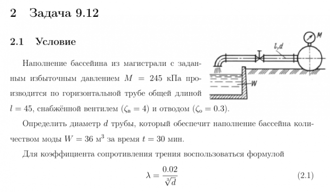 Для студентов по предмету Механика жидкости и газа (МЖГ или Гидравлика)Задача 9-12Задача 9-12