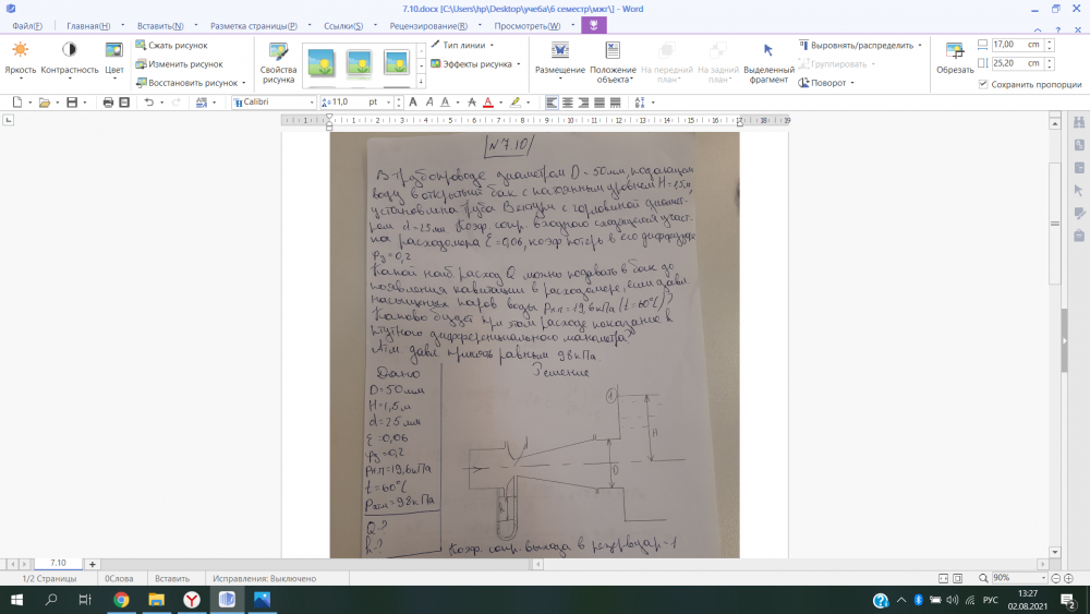 Для студентов по предмету Механика жидкости и газа (МЖГ или Гидравлика)Задача 7-10Задача 7-10