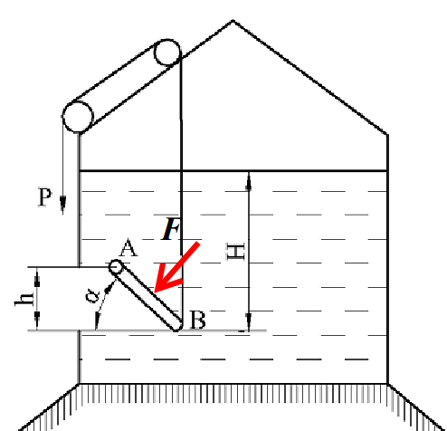 Для студентов по предмету Механика жидкости и газа (МЖГ или Гидравлика)Для открытия хлопушки АВ, закрывающей отверстие в квадратной трубе со стороной h = 40 см, требуется приложить силу 10 кн. Определить высоту Н , если вДля открытия хлопушки АВ, закрывающей отверстие в квадратной трубе со стороной h = 40 см, требуется приложить силу 10 кн. Определить высоту Н , если в