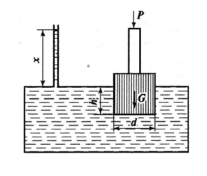 Для студентов по предмету Механика жидкости и газа (МЖГ или Гидравлика)Вследствие опускания поршня весом G в закрытый резервуар под действием силы Р жидкость поднялась в пьезометре на высоту x (рис. 7). Определить величинВследствие опускания поршня весом G в закрытый резервуар под действием силы Р жидкость поднялась в пьезометре на высоту x (рис. 7). Определить величин