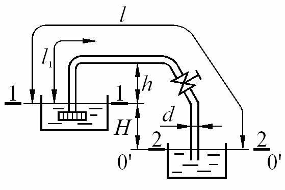 Главная » Учебные материалы » Механика жидкости и газа (МЖГ или Гидравлика) » Решения задач » Несколько классов/семестров » Определить необходимую разность уровня Н в двух резервуарах, соединенных сифонным трубопроводом, и возможный вакуум РЗАК в верхней точке сифона. Сифон предназначен для пропуска расхода, равного Q. Длина сифонного трубопровода l, расстояние до верхней