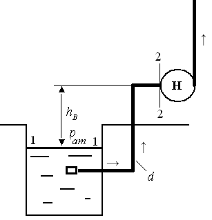 Насос обеспечивает подачу Q = 36 л/с (рисунок 4). Длина всасывающей линии lВ = 5 м, ее диаметр dВ = 200 мм. Допустимый вакуум во всасывающей линии hвакдоп = 4,5 м. Коэффициент местного сопротивления приемного клапана с защитной сеткой ζкл = 8,5, коэффициент местного сопротивления поворота ζпов = 0,1. Коэффициент кинематической вязкости воды ν = 0,01 см2/с. Абсолютная шероховатость трубы Δ = 0,2 мм. Определить предельную высоту всасывания hВпред.