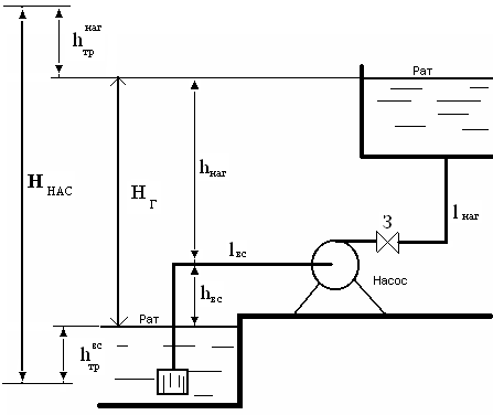 Подобрать центробежный насос (см. рисунок 6) для подачи воды (γ = 9,81 кН/м3, ν = 0,01см2/с) с расходом Q = 18 л/c на высоту НГ = 4 м, если длина всасывающего трубопровода lвс = 6 м, длина нагнетательного трубопровода lнаг = 100 м. Сумма коэффициенто