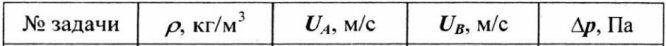 Воздух плотности р, имея ско­рость на подходе к зданию, равную UА, над коньком здания имеет ско­рость, равную Uв, причем UAB (рис.1). Давление на подходе к зданию и в самом здании равно ат­мосферному, благодаря этому в фонаре здания В создается тяга Δр вентиляционного потока. Потерями напора пренебрегаем. Пользуясь данными таблицы, определить величины, отмеченные в ней знаком вопроса.
