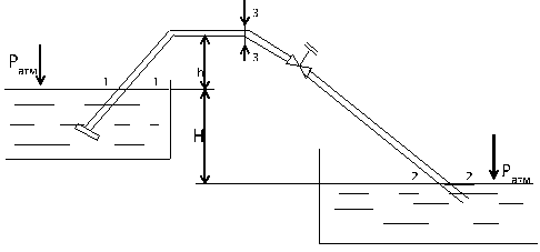 λ = ƒ(Re, ∆) для новых стальных труб в квадратичной области сопротивлений. Найти вакуум в опасной точке сифона, если длина участка трубопровода до этой точки L (м), ее возвышение над уровнем воды в верхнем резервуаре h (м) .