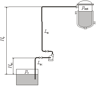 - давление в заборной емкости (абс.) ро = 1 ат.;