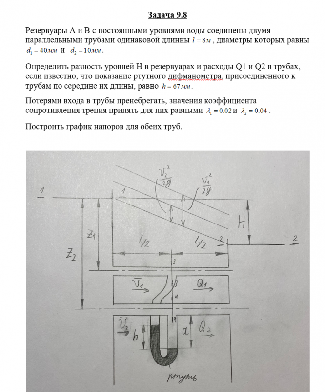 Для студентов по предмету Механика жидкости и газа (МЖГ или Гидравлика)Задача 9-8Задача 9-8