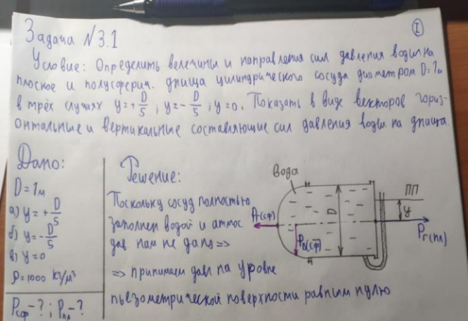 Для студентов по предмету Механика жидкости и газа (МЖГ или Гидравлика)Задача 3-1Задача 3-1