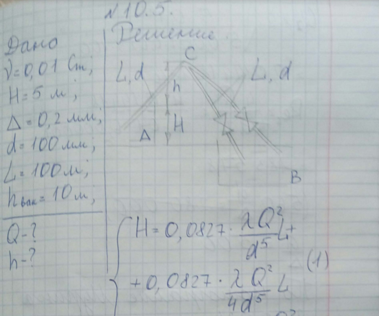 Для студентов по предмету Механика жидкости и газа (МЖГ или Гидравлика)Задача 10-5Задача 10-5