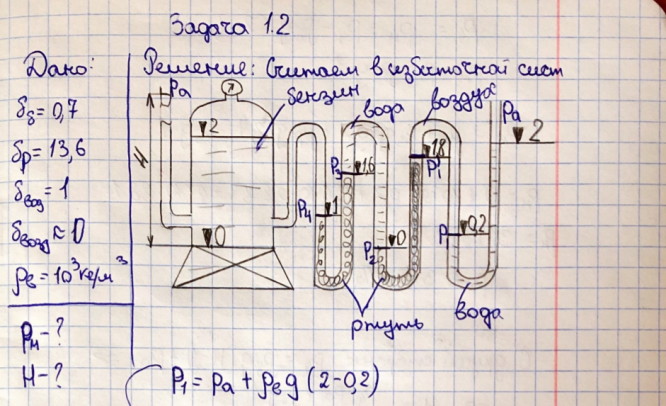 Для студентов по предмету Механика жидкости и газа (МЖГ или Гидравлика)Задача 1-2Задача 1-2