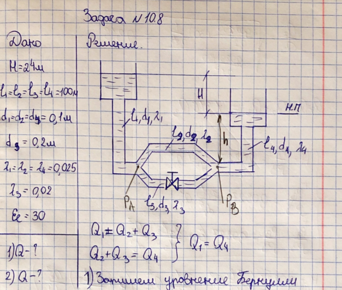 Для студентов по предмету Механика жидкости и газа (МЖГ или Гидравлика)Задача 10-8Задача 10-8