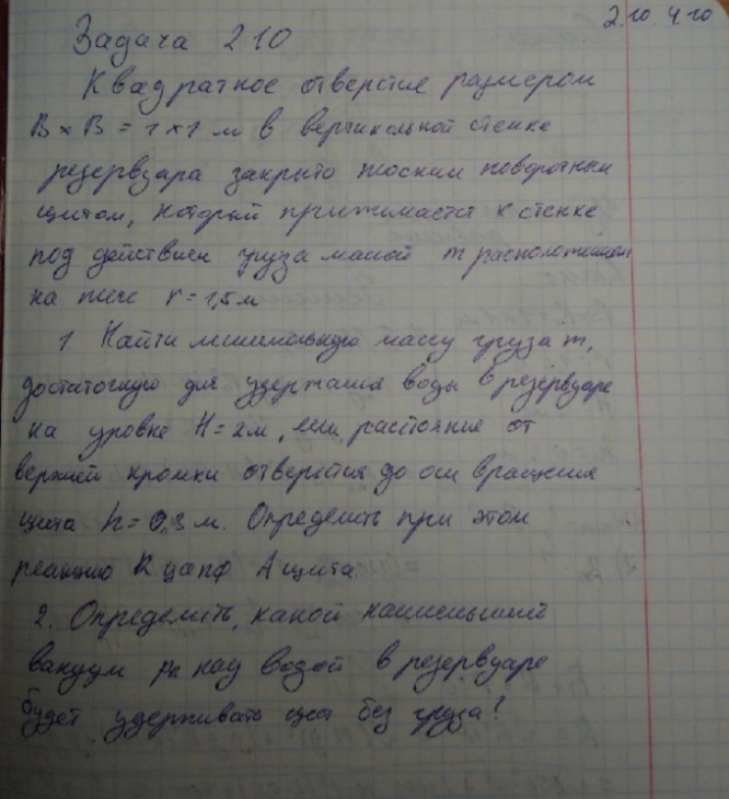 Для студентов по предмету Механика жидкости и газа (МЖГ или Гидравлика)Задача 2-10Задача 2-10