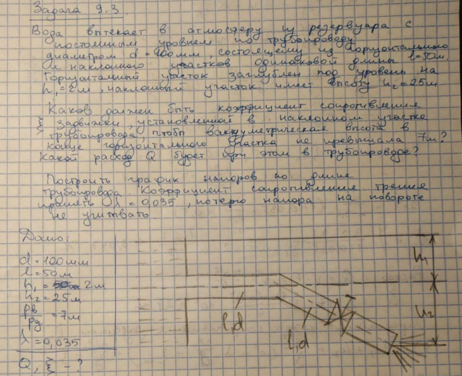Для студентов по предмету Механика жидкости и газа (МЖГ или Гидравлика)Задача 9-3Задача 9-3