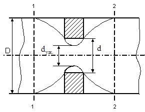 Найти полное и статическое давления перед шайбой, при которых в трубопроводе за шайбой возникнет кавитация, если известно, что давление насыщенных паров керосина PН.П.=120 мм рт.ст, D=30 мм, d=10 мм, объемный расход – Q=2 л/с, коэффициент сопротивлен