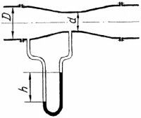 Какую разность уровней h покажет дифференциальный манометр, заполненный водой, при расходе Q=2,0 м3/с воздуха (ρв = 1,24 кг/м3 ) через расходомерную трубу, если ее диаметры D и d? Дано: Q=2,0 м3/с; ρвозд=1,24 кг/м3; D=500 мм; d=200 мм; ρводы=103 кг/м