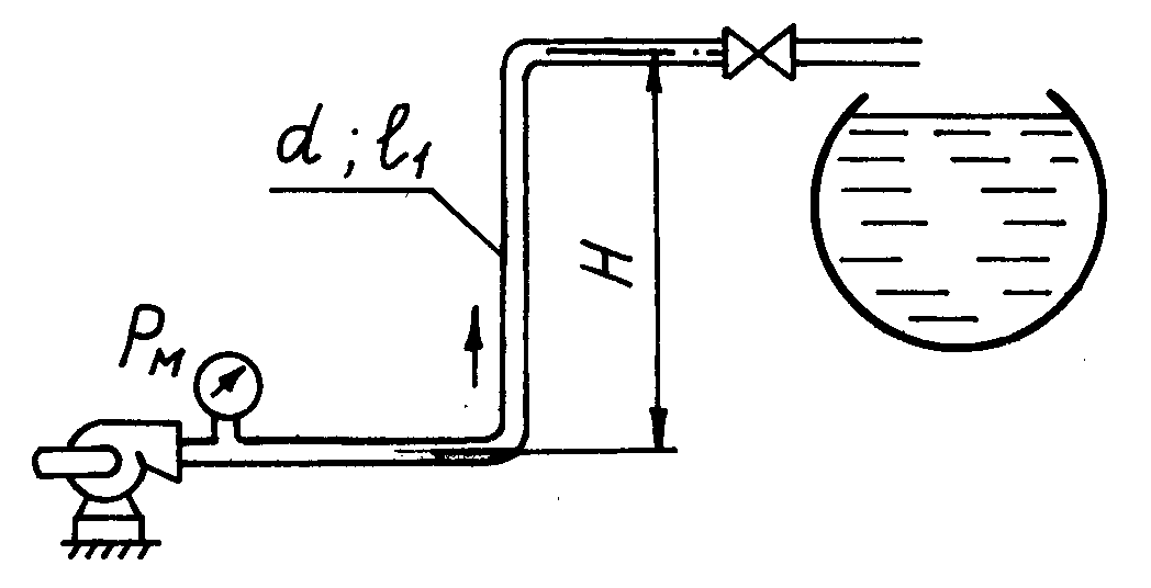 Главная » Учебные материалы » Механика жидкости и газа (МЖГ или Гидравлика) » Решения задач » НГТУ им. Р.Е. Алексеева » Несколько классов/семестров » Номер 6 » Вариант 20 » По трубопроводу длиной l1 насос перекачивает топливо (ρ=880кг/м3) в резервуар на высоту H1. Манометрическое давление, создаваемое насосом, равно рм. Шероховатость стенок трубопровода Δ=0,25 мм. Местные потери в трубопроводе принять равными 15 % потер