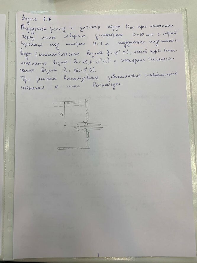 Для студентов по предмету Механика жидкости и газа (МЖГ или Гидравлика)Задача 6-16Задача 6-16