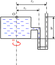 Цилиндрический сосуд, заполненный водой, приведен во вращение с постоянной угловой скоростью w = 10 рад/с. Найти наименьшее давление в воде, заполняющей сосуд, по показанию h= 1 м ртутного манометра, вращающегося вместе с сосудом, если r1 = 0,8 м; r2 = 0,7 м. При какой угловой скорости равновесие жидкости в сосуде нарушится?