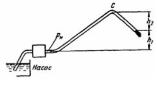 2) Найти величину вакуума в сечении С, расположенном выше выходного сечения трубопровода на h2 = 35 м, длина участка трубопровода между этими сечениями l=10км.