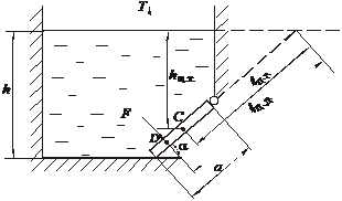 Главная » Учебные материалы » Механика жидкости и газа (МЖГ или Гидравлика) » Решения задач » Плоский прямоугольный щит перекрывает выходное отверстие резервуара под углом α = 60º. Щит имеет размеры a × b = 2 × 3 м, вес G = 5 кН. Глубина воды перед щитом h = 5 м. Удельный вес воды γ = 104 Н/м3. Трением в шарнирах пренебречь. Определить началь