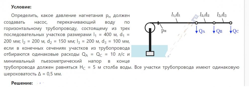 Для студентов по предмету Механика жидкости и газа (МЖГ или Гидравлика)Определить, какое давление нагнетания pн должен создавать насос, перекачивающий воду по горизонтальному трубопроводу, состоящему из трех последовательОпределить, какое давление нагнетания pн должен создавать насос, перекачивающий воду по горизонтальному трубопроводу, состоящему из трех последователь