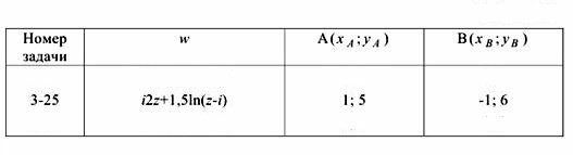 Течение, полученное от сложения поступательного потока и потока источника, имеет характеристическую функцию w. Построить семейство линий тока, найти положение критической точки, составить уравнение линии тока, проходящей через критическую точку. Найти расход жидкости через отрезок АВ.