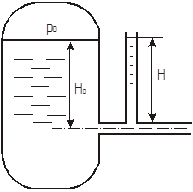 Главная » Учебные материалы » Механика жидкости и газа (МЖГ или Гидравлика) » Решения задач » Несколько классов/семестров » Номер 2 » Вариант 2 » Определить расход керосина, вытекающего из бака по трубопроводу диа-метром d=50 мм, если избыточное давление воздуха в баке p0=16 кПа; высота уровня H0=1 м; высота подъема керосина в пьезометре, открытом в атмосферу, H=1,75 м. Плотность керосина ρ=80