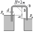 Определить давление в сечении В-В, если при общей длине L=10 метрам расстояние от начала трубопровода до сечения В-В составляет 7 м, а диаметр d=50 мм, Н=2 м.