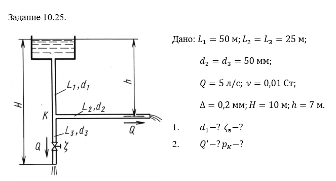 Для студентов по предмету Механика жидкости и газа (МЖГ или Гидравлика)Задача 10-25Задача 10-25