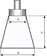 Для студентов по предмету Механика жидкости и газа (МЖГ или Гидравлика)Сосуд, имеющий форму конуса с диаметром основания D, переходит в цилиндр диаметром d. В цилиндре перемещается поршень с нагрузкой G = 3000 Н. Размеры Сосуд, имеющий форму конуса с диаметром основания D, переходит в цилиндр диаметром d. В цилиндре перемещается поршень с нагрузкой G = 3000 Н. Размеры
