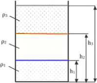 Главная » Учебные материалы » Механика жидкости и газа (МЖГ или Гидравлика) » Решения задач » Несколько классов/семестров » Несмешивающиеся жидкости с плотностями ρ1, ρ2 и ρ3 находятся в сосуде. Определить избыточное давление на основания сосуда pизб, если ρ1 = 1000 кг/м3; ρ2 = 850 кг/м3; ρ3 = 760 кг/м3; h1 = 1 м; h2 = 3 м; h3 = 6 м.