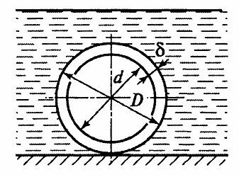 Определить внешний диаметр трубопровода D, проложенного по дну реки, если толщина стенки δ=10 мм; ρтруб=7,8∙103 кг/м3; ρв=103 кг/м3.