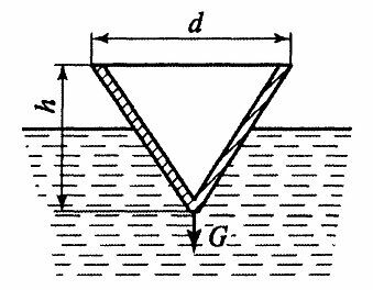 Для студентов по предмету Механика жидкости и газа (МЖГ или Гидравлика)Коническое тело с диаметром основания d=0,4 м, высотой h=0,5 м и массой m=10 кг плавает в воде. Какое количество воды необходимо залить в эту емкость Коническое тело с диаметром основания d=0,4 м, высотой h=0,5 м и массой m=10 кг плавает в воде. Какое количество воды необходимо залить в эту емкость