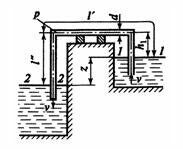 Главная » Учебные материалы » Механика жидкости и газа (МЖГ или Гидравлика) » Решения задач » Несколько классов/семестров » Сифон длиной l=11+l2=25м и диаметром d=0,4 м позволяет перетекать воде из одного резервуара в другой. Центральная часть сифона поднимается на высоту h1=2 м над свободной поверхностью жидкости. Разница уровней в резервуарах z=2,5 м. Коэффициент потери