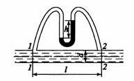Главная » Учебные материалы » Механика жидкости и газа (МЖГ или Гидравлика) » Решения задач » Несколько классов/семестров » Через трубопровод диаметром d=100 мм движется вода с расходом Q=8 л/с. С помощью U-образного ртутного манометра между сечениями 1-1 и 2-2, расположенными на расстоянии l=50м друг от друга, берется разность показаний h=32 мм. Относительная плотность р