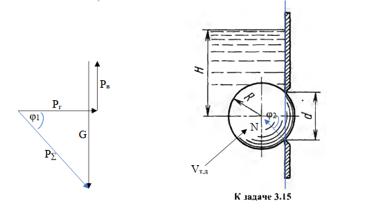 Каков наименьший уровень Н воды в сосуде, при котором стальной шар (относительной плотностью δ = 8) радиусом R = 100 мм, перекрывающий круглое отверстие диаметром d = 1,5R в вертикальной стенке, будет находиться в равновесии?