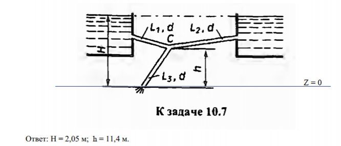 Для студентов по предмету Механика жидкости и газа (МЖГ или Гидравлика)Задача 10-7Задача 10-7