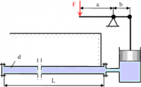 Чему равно усилие F на рукоятке насоса в последний момент опрессовки, если диаметр поршня насоса dп=40 мм. Соотношение плеч рычажного механизма a/b=5.