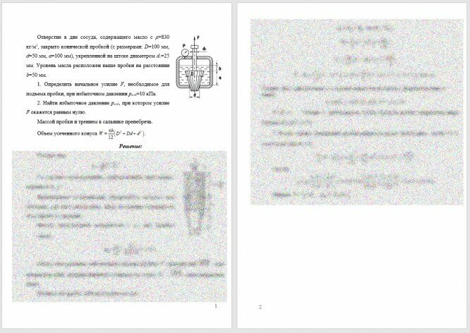 1. Определить начальное усилие F, необходимое для подъема пробки, при избыточном давлении pизб=10 кПа.