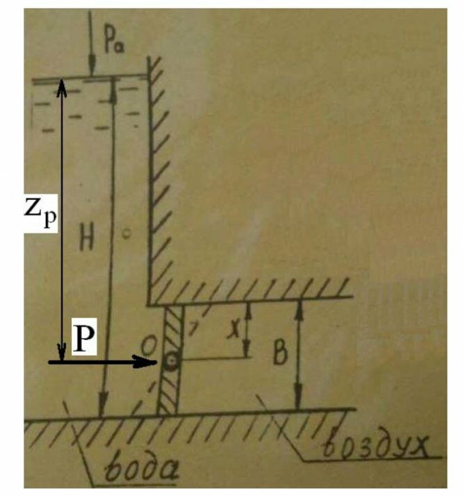 Для студентов МАДИ по предмету Механика жидкости и газа (МЖГ или Гидравлика)На каком расстоянии «x» необходимо расположить ось затвора «О», чтобы при открывании его в начальный момент необходимо было преодолеть только момент вНа каком расстоянии «x» необходимо расположить ось затвора «О», чтобы при открывании его в начальный момент необходимо было преодолеть только момент в 2022-08-15СтудИзба