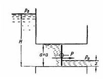 Слева от квадратного дроссельного затвора размером α∙α уровень воды постоянен (H), а справа изменяется (z). Выразить в зависимости от z суммарную гидравлическую силу Р, действующую на затвор и её момент М относительно оси вращения затвора, проходящей через центр его тяжести. Указать наибольшие значения Р и М в интервале 0≤zH.