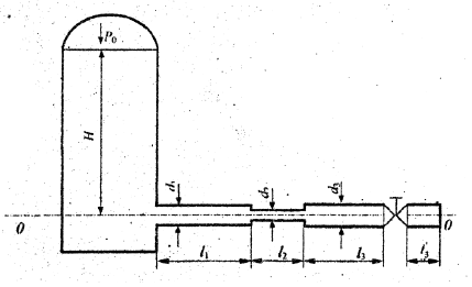 Определить расход Q, через систему труб на рисунке, приведѐнном ниже с диаметрами d1=100 мм, d2=50 мм, d3=100 мм и длинами l1=10 м, l2=5 м, l3=8 м, l3`=1 м. Задвижка открыта полностью. Трубы чугунные новые. Температура воды 20 ℃. Построить напорную и пьезометрическую линии, если вакуум над поверхно-стью воды с глубиной Н=12 м. равен Рвак.=4 м вод. ст.