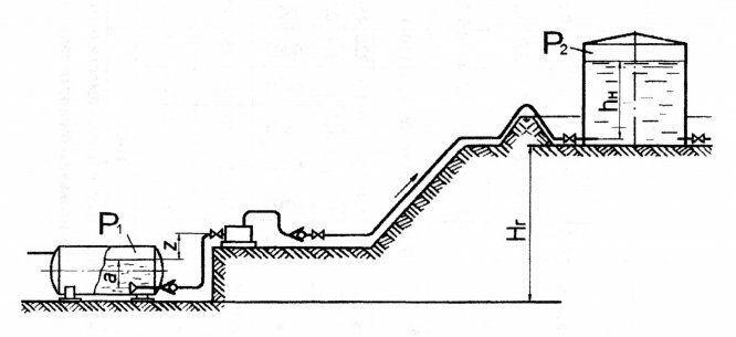 Полагая, что насосная станция работает круглосуточно, необходимо определить диаметр всасывающего и напорного трубопроводов - dвс и dнг, высоту расположения насосов относительно уровня нефти в заборном резервуаре, считая, что абсолютное давление над её поверхностью (р2) равно 40 кПа, полный напор насоса, тип и марку насоса для подачи заданного количества жидкости, мощность и тип электродвигателя.