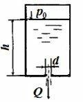 Главная » Учебные материалы » Механика жидкости и газа (МЖГ или Гидравлика) » Решения задач » Несколько классов/семестров » Вода вытекает из закрытого резервуара в атмосферу через отверстие диаметром d = 20 мм и коэффициентом расхода μ = 0,62. Глубина погружения центра отверстия h = 0,45 м, избыточное давление на поверхности жидкости p0и = 8,3 кПа. Определить расход жидко