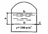 Водяной резервуар пневматической водоподъемной установки имеет диаметр D и толщину стенок δ. Под действием давления воздуха р0 и высоты слоя воды h в стенках резервуара возникает напряжение σ.