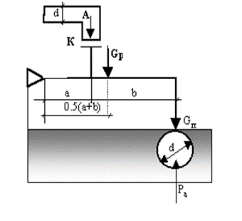 Главная » Учебные материалы » Механика жидкости и газа (МЖГ или Гидравлика) » Решения задач » Несколько классов/семестров » Вода (ρв=1000 кг/м3) по трубе диаметром d под давлением p подаётся в резервуар. Во избежание переполнения резервуара сечение трубы перекрывается клапаном К, прижимаемым к трубе рычажно-поплавковым устройством. Плечи рычага а и b; масса рычага Мр. поп