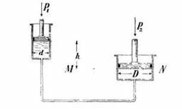Для студентов по предмету Механика жидкости и газа (МЖГ или Гидравлика)Два вертикальных цилиндра, имеющих диаметры d=20 см и D=40 см, наполнены водой и сообщены между собой трубкой. В цилиндры заключены поршни, из которыхДва вертикальных цилиндра, имеющих диаметры d=20 см и D=40 см, наполнены водой и сообщены между собой трубкой. В цилиндры заключены поршни, из которых
