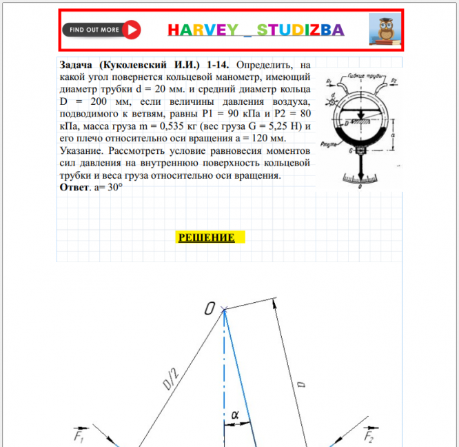 Для студентов по предмету Механика жидкости и газа (МЖГ или Гидравлика)Задача 1-14Задача 1-14